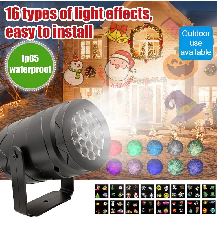 Multiple patterns can be switched to project beautiful Christmas designs onto walls and ceilings, creating a festive atmosphere.