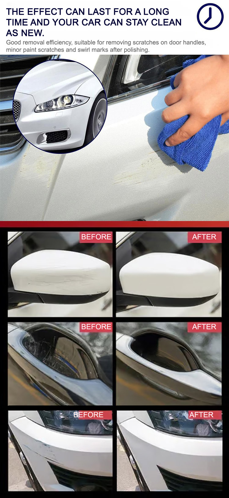 Repairs 3 times faster than ordinary products, increases gloss by 200%, suitable for any car model and color, waterproof and dustproof, and lasts for six months on a single application.