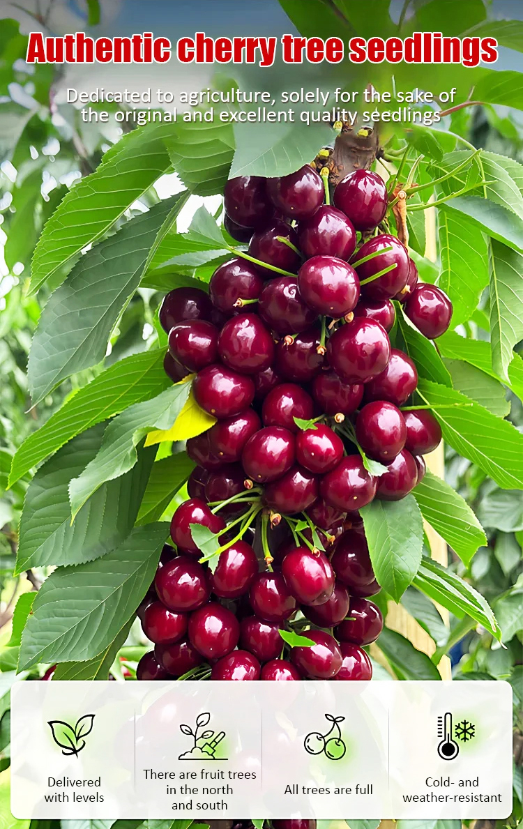 🍒Tested by horticultural experts, fresh cherries can be harvested in the same season after planting. 🏡 98% survival rate, easy to care for, beginner-friendly, disease-resistant, and with a well-developed root system. 🌿Plump, sweet, and juicy. Suitable for all planting areas.
